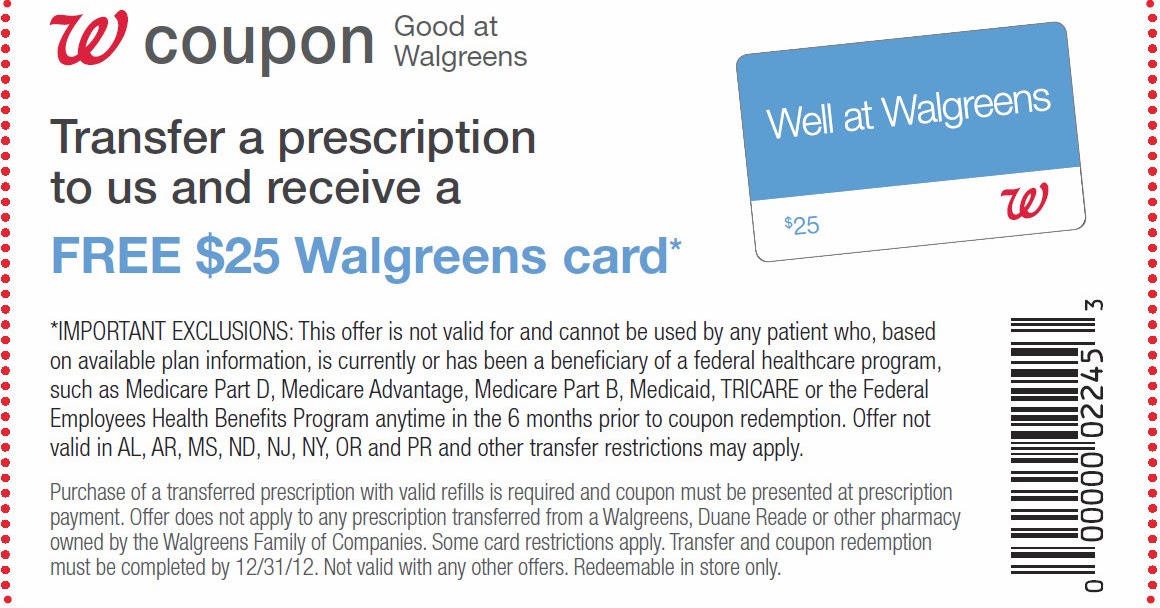 Walgreen's $25 Prescription Transfer Coupon walgreens new prescription coupon
