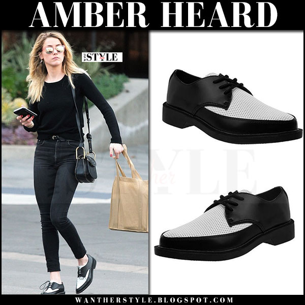 Amber Heard in black and white T.U.K. tuk shoes nyc